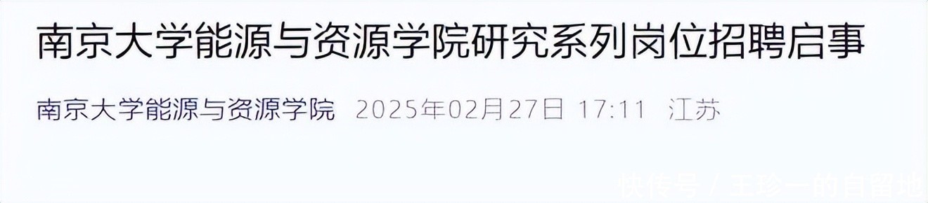 在网络上查阅东思嘉老师的公开信息可知,今年2月27日,南京大学能源与资源学院官方账号发布了一份招聘启事,招聘一些特任研究员、特任副研究员、特任助理研究员、博士后。