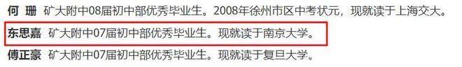 至今东思嘉老师就读的中国矿业大学附属中学的官网上,东思嘉老师的名字还在“初中英才榜”的榜单中。